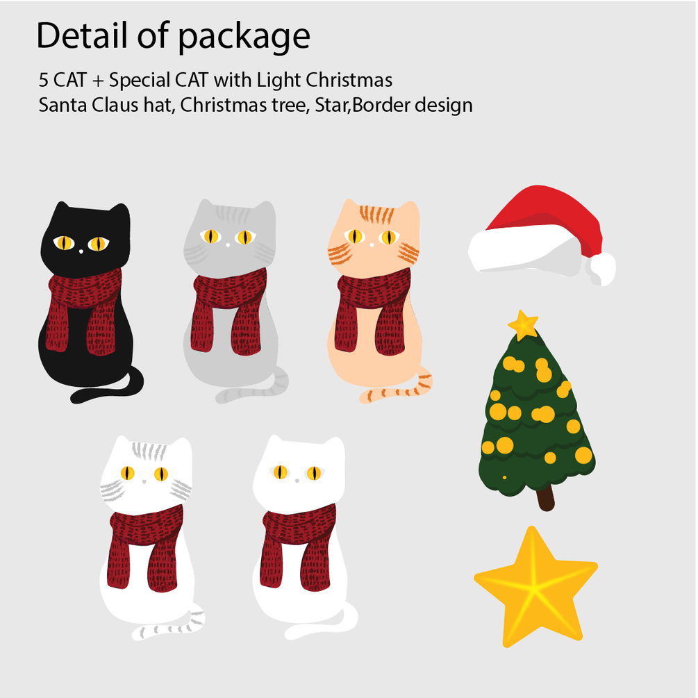 Story of the cat is a collection of 5 cats with elements for Christmas day, Also can design like DIY, to put something of the new design. It's easy to use for beginners who want to design something cute.